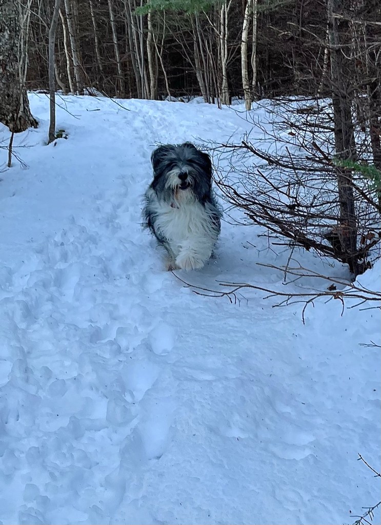 The Boss was annoyed last night because first the Warden had a ZOOM call while he was waiting for supper, and later, she was on the phone when he wanted to go to bed. So he started barking. And barking. The Warden continued to chat on the phone – but instead of letting him out the back door – into the fenced yard, she let him out front. She does that often with him – because he’s “trustworthy.” Ha. He marched out and had a pee and then proceeded to poop in the middle of the driveway. He wasn’t going climbing over any snow banks to poop. From the front door, the Warden could see him – just past the bed of plants we have in the middle of our circular driveway. And then he walked around the bed. She was still chatting, and watching and expected to see him emerge from around the bed. She waited a few seconds and walked from the door to see where he was. Gone. No sign of him. He must have marched up the driveway and she didn’t see him because it was dark. She called. No Boss. She quickly told her friend she had an AWOL dog and she hung up. At first she started up the driveway, but was wearing no coat and had no socks on her slippered feet. She raced in the house, threw on her coat and boots and went up the driveway again. She called. No Boss. She ran back down the driveway and jumped in the car. She had a feeling he was headed to the neighbors with the cats. She slowly began to back the car out of the garage when she heard barking. The Boss was standing and shouting at the front door to be let in.