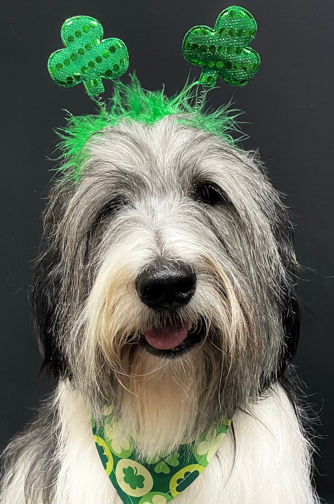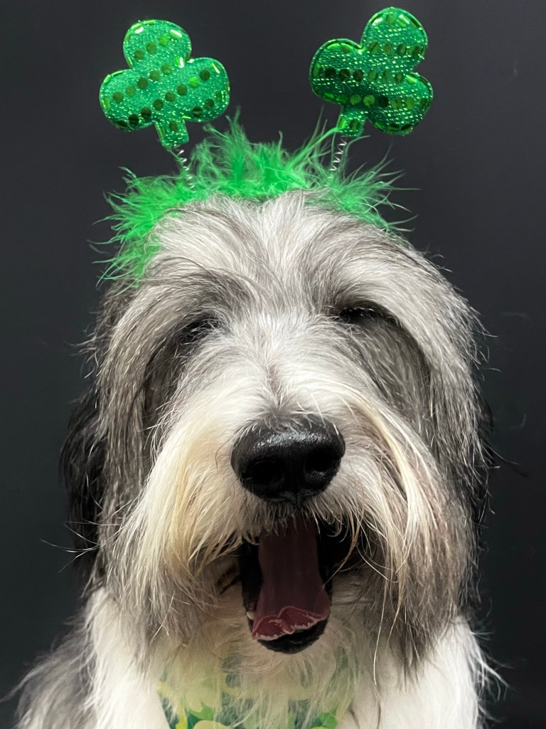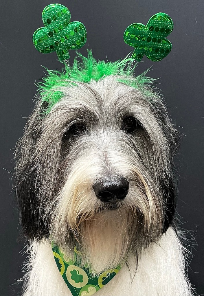 On a different note, I missed my time with the Borzoi babes on Tuesday, but I did go to training with the Shaggies yesterday and today I’m off to class. I just hope the Warden doesn’t make me wear the shamrock headband. Mind you, I could provide good distraction practice for the other dogs in class. If they don’t attack me first…