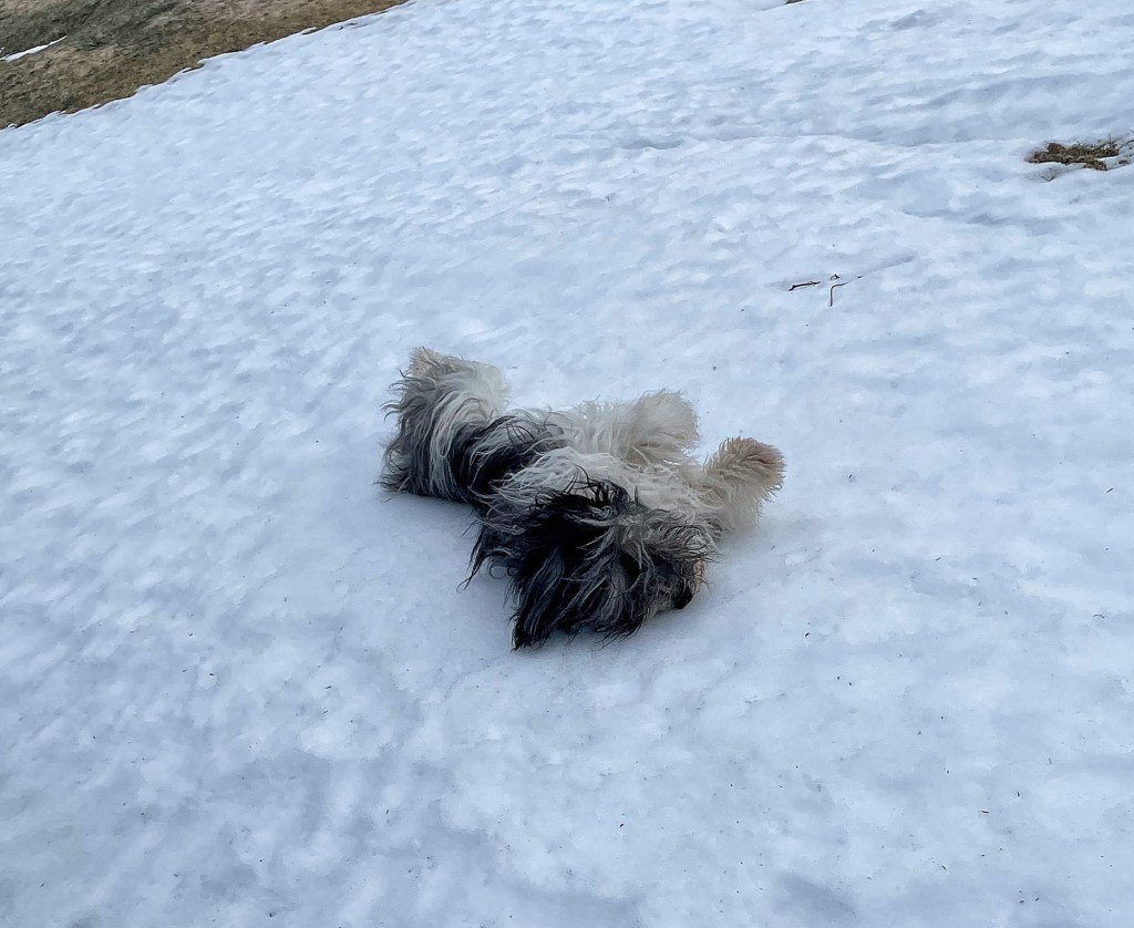 Yesterday, during a momentary break in the rain and mist, she figured it would be her only opportunity. She loaded her pockets with liver treats and took us outside.