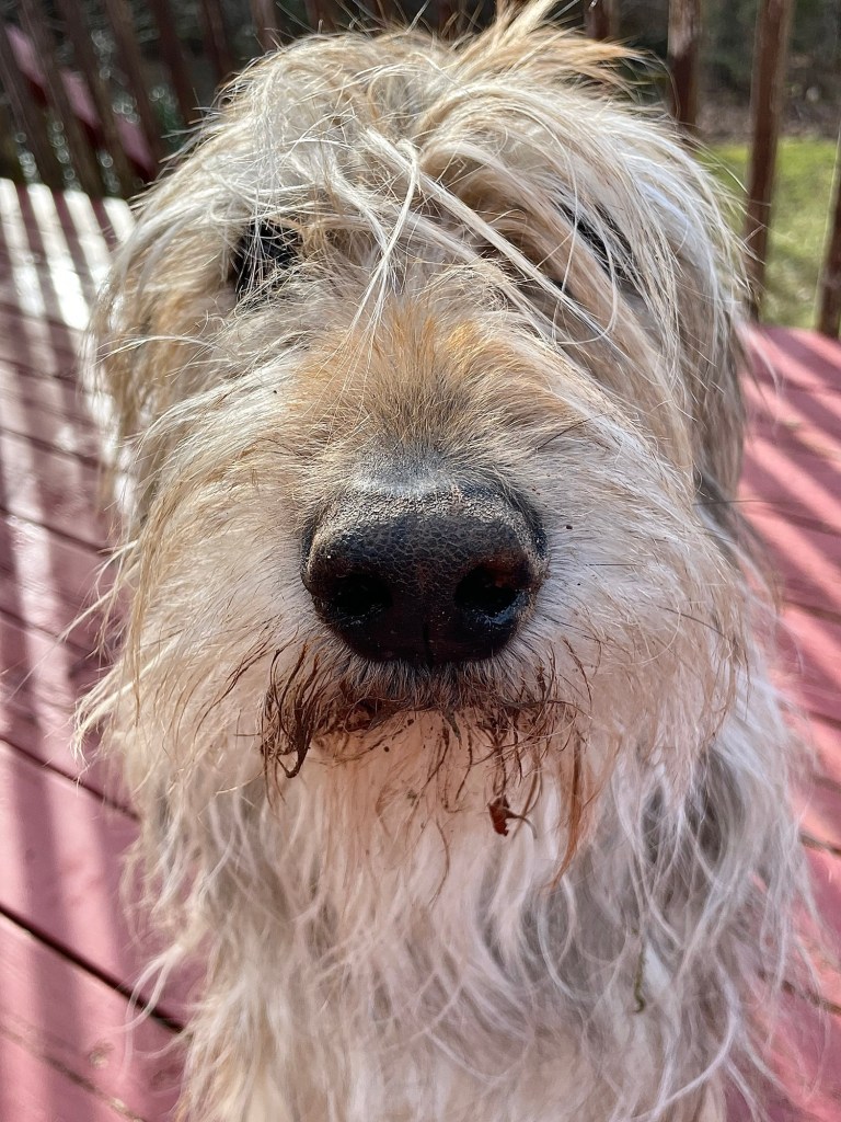 The Warden kept waiting and waiting and WAITING for a sunny day to take the dreaded shots. And we’ve had nothing but rain all week. We are all getting moldy.